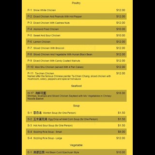 For general comments or questions about catering needs, reservations, ordering, menu items etc., please call Chaing's Gourment directly during business hours. (206) 527-8888